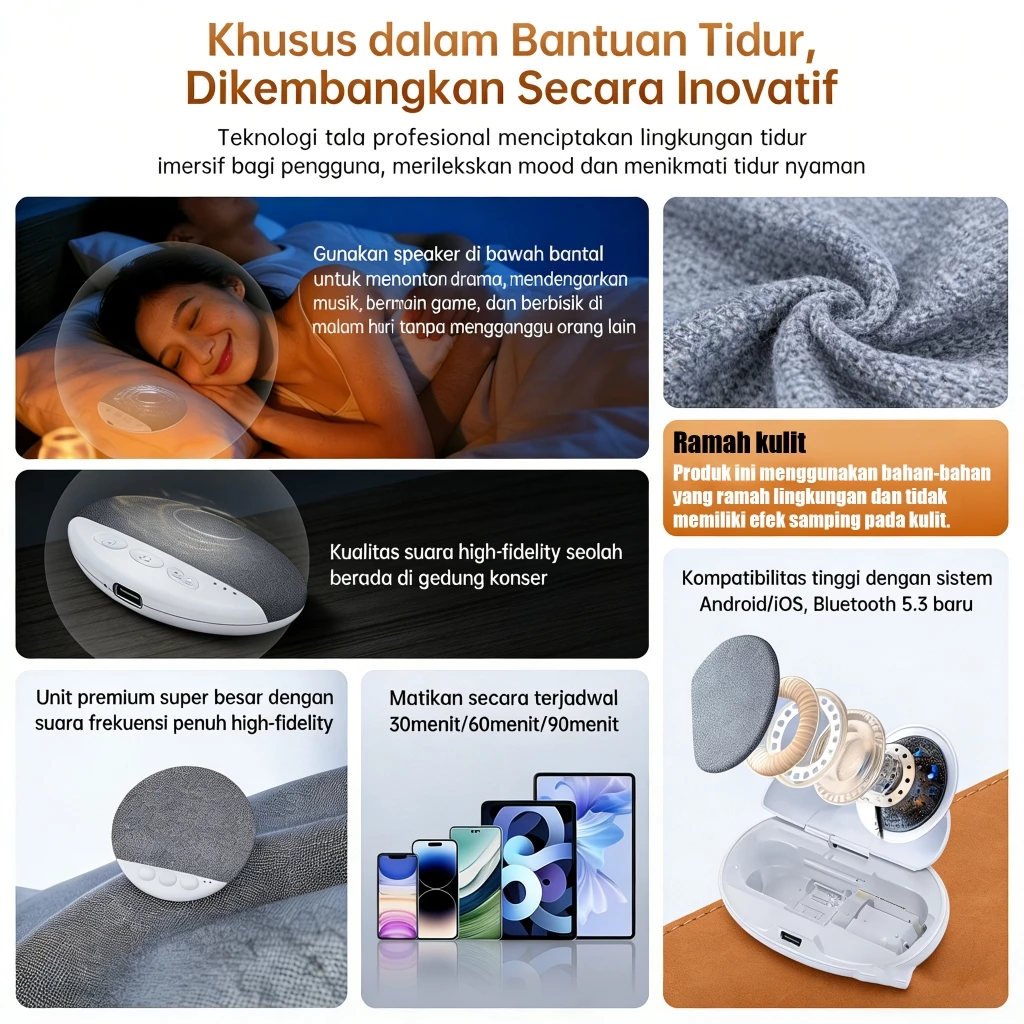 • Koneksi Bluetooth instan tanpa kabel ribet untuk relaksasi maksimal sebelum terlelap.
